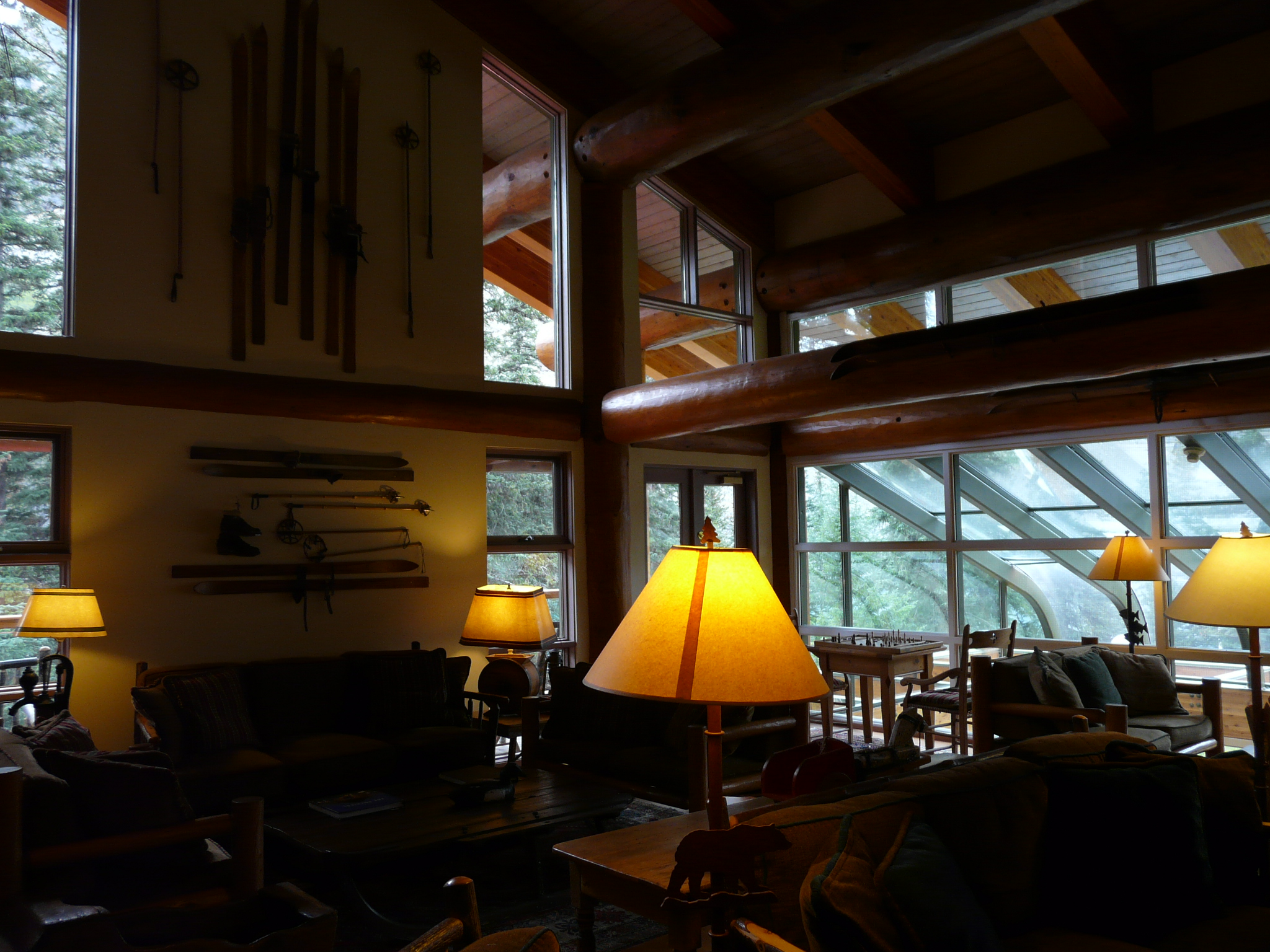 The lad who took us to our ground floor room told us that a female grizzly and two cubs often trotted down early morning to feed in a meadow like area which some of the bedrooms looked onto. Wow! My mind went into overdrive and I made a mental note to set the alarm and sit out on the balcony to wait and watch. Then we noticed that our room didn’t HAVE the balcony we’d paid for. It had a beautiful fireplace and was a really lovely room but there was no sitting out area.