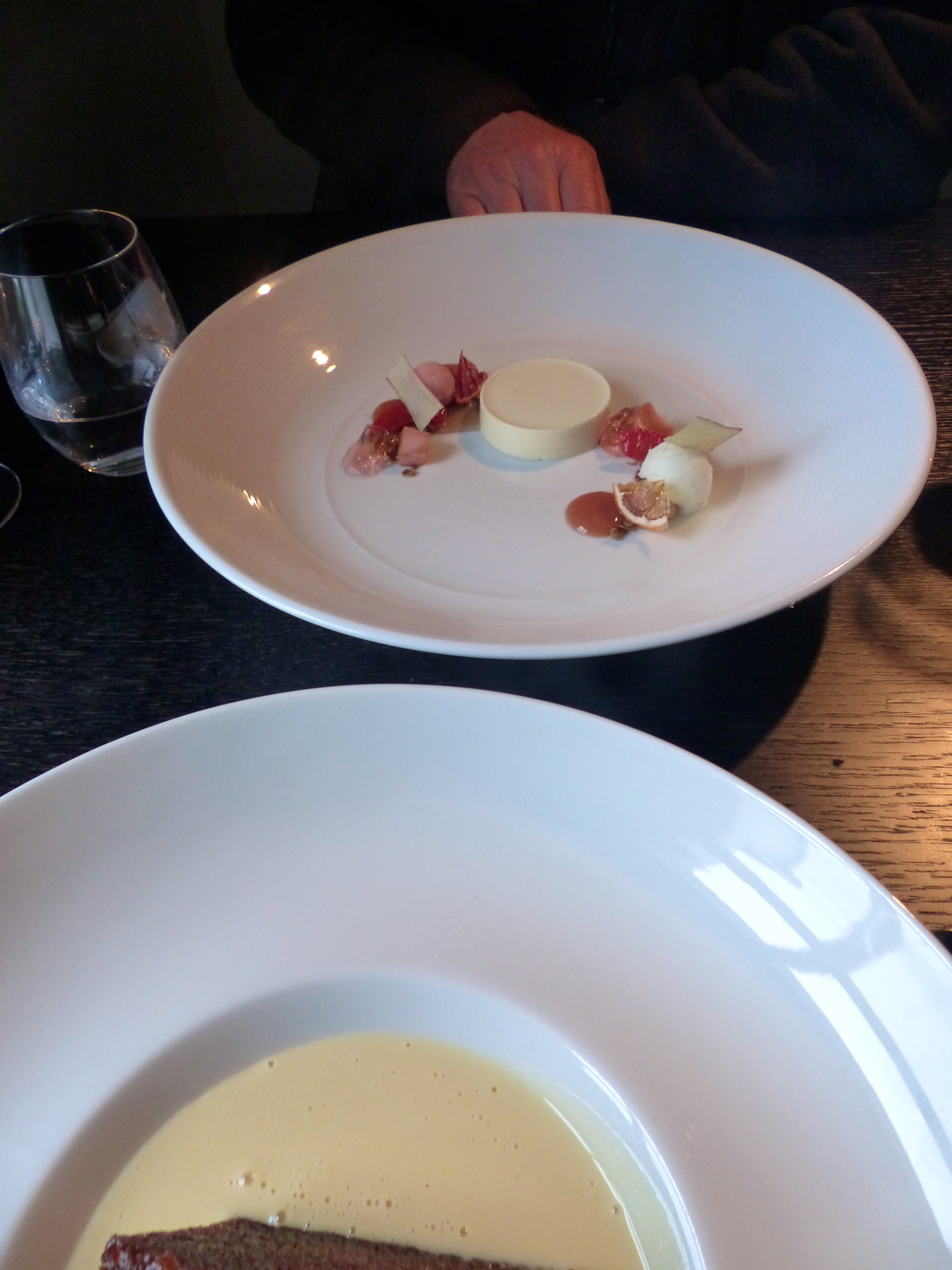 The young waiter was from Skye, a student, very professional but friendly.The menu is quite limited at lunchtime, given its set price of £37 (ouch).2/3 choices per course I recall.We both had the Ox Cheek to start with, something that I admit didn’t immediately appeal but it was sensational.The flavours! One of the finest starters I’ve ever had.Chris agreed. My husband always enjoys wine with his meal though I don’t drink that much but I always get a sip of what he’s ordered to try it.He’s not a red man so to speak so it was a sauvignon.Pretty ordinary , we both agreed. I often feel that even in the best places, the wine quality never matches that of the food, despite its eye watering price.