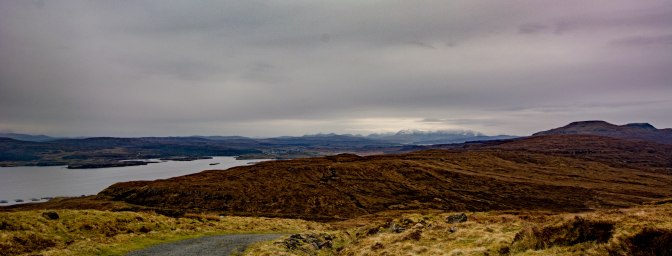 It started off ok, on a proper road up to the radio masts. Nice views over to Waterstein Head and the crofts beyond Glendale.And back towards the Black Cuillin.