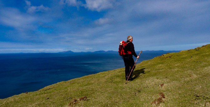 It’s not the most obvious route to this highest cliff point on Skye but Chris, perusing the OS map the night before, reckoned it would provide us with a lovely high level ridge walk as we headed out to Dunvegan Head itself. It didn’t!!