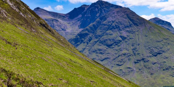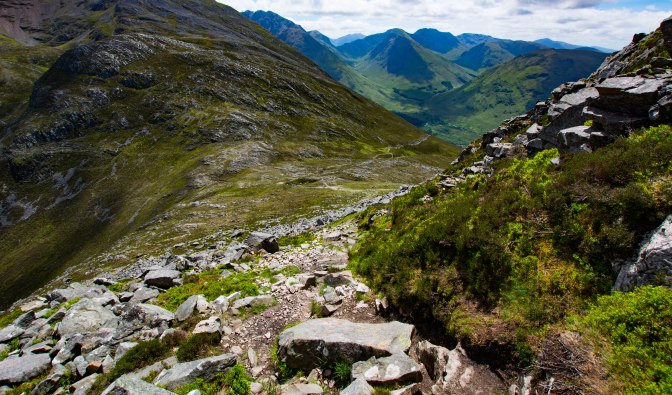 The Pap of Glencoe – a famous landmark at the end of the glen, a rocky, knobbly little tower of a hill which promised spectacular views.In reality, it was a tough, relentless slog up an eroded track.BUT, it had been a wee bee in my bonnet every time we drove through Glencoe. I always looked up at it, not sure why I’d never attempted it.No difficulty as such, no exposure or anything scary, just HARD GRAFT. The hill’s Gaelic name is Sgorr na Ciche – the peak of the breast, hence the anglicisation to ‘The Pap.’ It’s not a huge hill, only just over 700m, but it’s very distinctive.