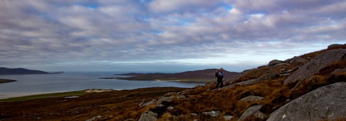 This lovely hill in the Outer Hebrides has been described as the Isle of Harris’s finest viewpoint and it’s difficult to disagree! It sweeps up from the famous creamy sands and turquoise ocean of Luskentyre, looking across to the impressive mountains of North Harris. We walked its broad tundra like ridge one summer a few years ago but it had been a cloudy day and we were eventually rained off the hill in a biting wind with very few views as a reward.So I had a real itch to do it again, if a good clear day presented itself.