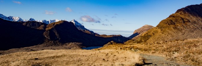 Below,Loch na Creitheach appears, a mystical, lonely lochan with only red deer for companions.It is possible to walk to the loch using the Glen Sligachan ‘path’ (more like a deer track).