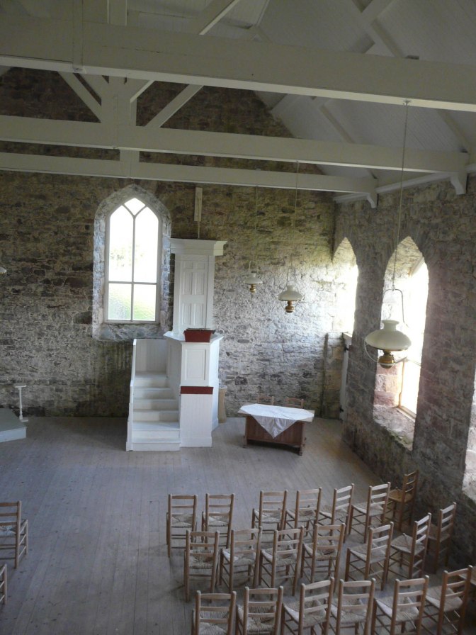 At the far side of the turquoise bay, the 7th century saint,  Maelrubha, is buried in the grounds of pretty Clachan Church though his grave is unmarked. The kirk is well worth a look for its austere stone and white washed interior as well as its important history.