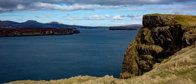 We had only a few hours to spare for a walk on a sunny but cold Easter Monday given family commitments. I had a real notion to re-visit Oronsay after a ten year or so gap(how on earth had so much time passed? Just too many walk options on Skye!) Cliffs, headlands, the ocean, islands – that is the landscape of this wonderful, less visited part of Skye where the only sounds are sheep and birdsong.