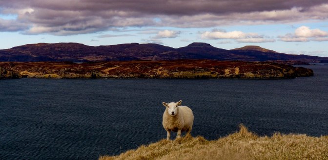 Another 20 minutes of strolling and we were back at the car, just as a crofter and his young son arrived in a pick up van.Greetings were exchanged and he asked us , with that lovely soft accent of the Gael, how our walk was. I think he recognised Chris’s own Gaelic lilt when he responded.Turns out, he was heading to the island to retrieve his sheep because they were due to lamb in a few days time and had to be brought indoors.I mentioned the sea eagle and he confirmed that they did attack the young lambs, for which he (and other island crofters) received £1300 compensation every year. As all this was going on his son was sitting (impatiently no doubt) on a Quad Bike, ready to head off for the day’s work with his Dad.Nice to talk to a local crofter, living, I am sure , a life of hard work and long hours with little time for holidays and leisure.But – what an environment to call your workplace every day. At the risk of romanticising what must be a hard life at times, I often think working close to the land as our forefathers did, must bring with it other compensations perhaps, other riches which are not monetary. A strong connection with the natural world and the elements which I know I long for often and which makes me feel ‘whole’ again; calmed; at peace and fulfilled.