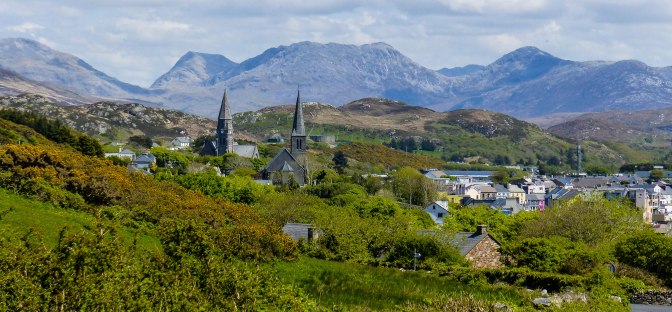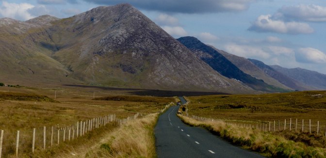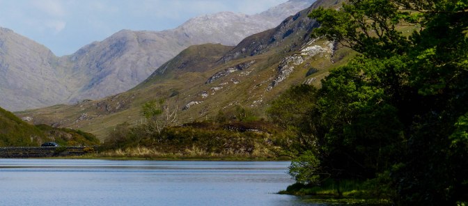 As the Maumturk Mountains and the Twelve Bens came into view, the road got lonelier and lovelier, crossing empty moorland dotted with the occasional lough (loch).