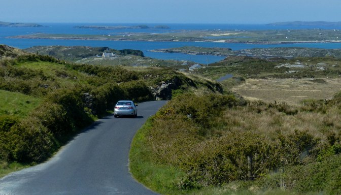 This 12km route is marketed as a top notch coastal detour from Clifden and it is very attractive indeed with low-lying rocky headlands and a heavily indented coastline, surprisingly well populated.