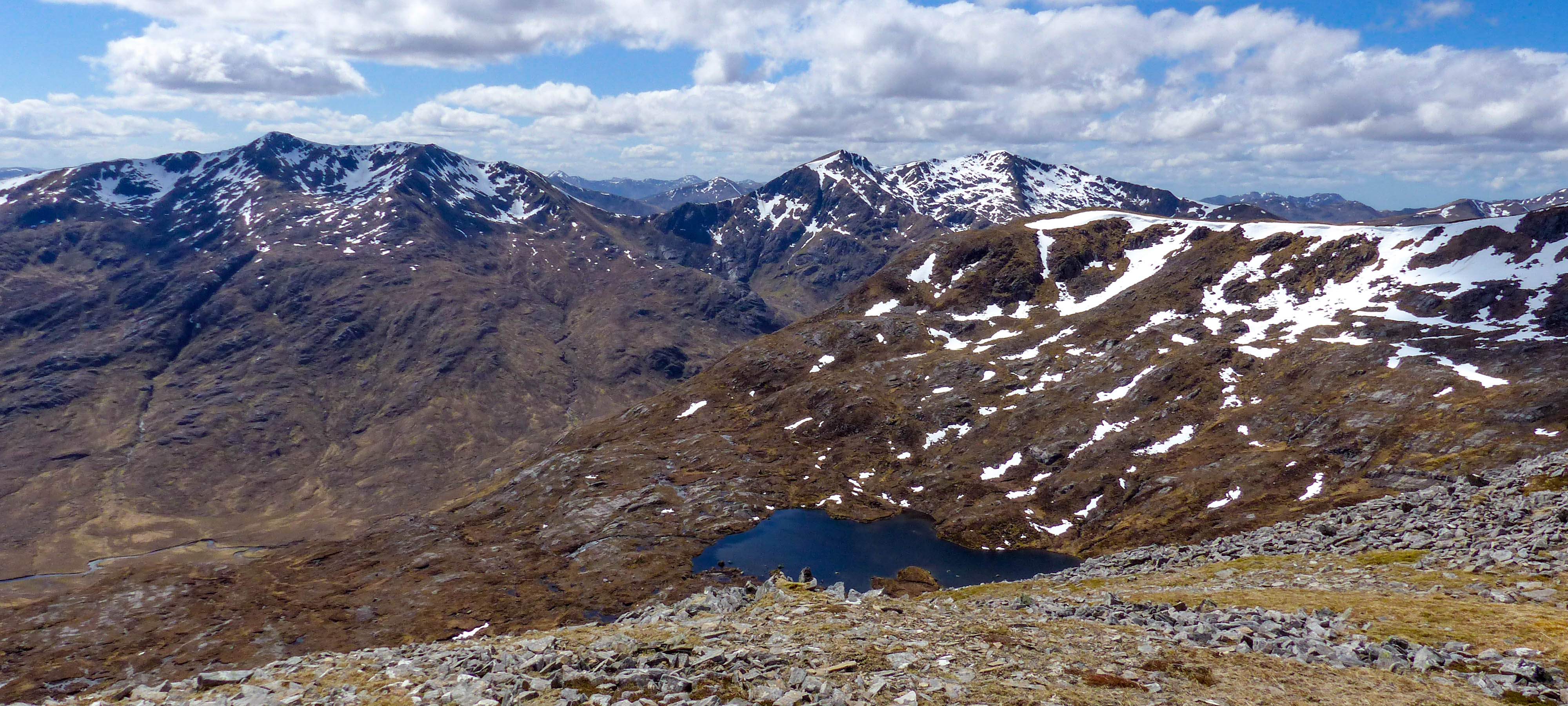 There are 7 Munros on this famous skyline in a glen that almost matches Glencoe for wow factor and is certainly wilder in feel overall.