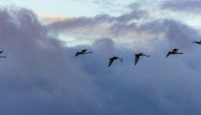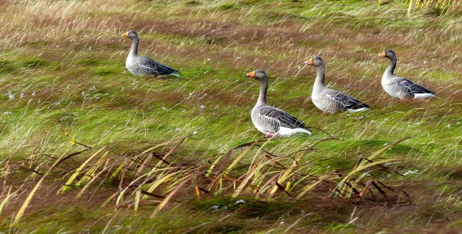 Wintering Greylag geese (having come south to escape the Arctic winter) watched us warily as we approached their feeding ground, honking noisily but evocatively as they finally decided they didn’t like the look of us and took off; geese are always easily spooked. More silently, a skein of snow-white Whooper swans rose elegantly in a long line , rising from the lochan they were feeding on, before landing at its far side, also a little unnerved by our presence. Enjoying wildlife on a walk is such an important part of it all for me, especially having spent 15 days in the spectacular but very barren High Arctic. Here, the landscape was equally affecting and beautiful , but alive.