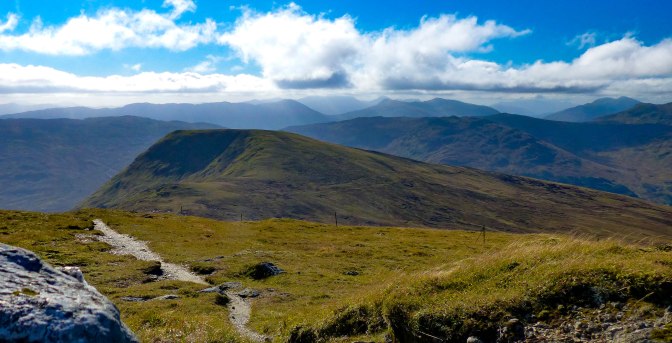 Glen Lyon feels far off the main tourist trail though it always attracts Munro baggers though we met none on that perfect day. In all , we were around 4 hours total for the walk given the 400m high start and with only 726m of ascent. In total, just over 5 miles return. A beauty of a hill walk.Superb country.