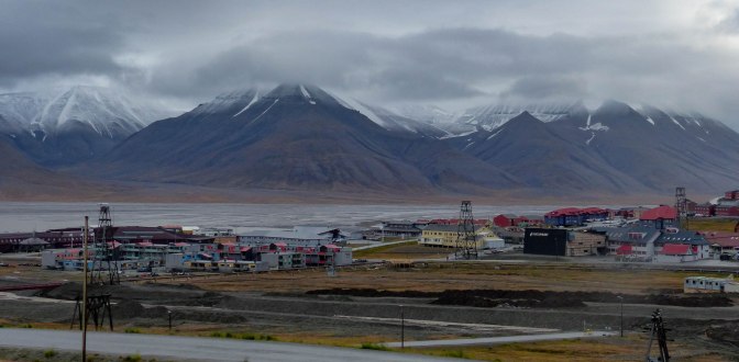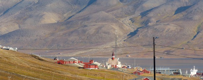 That was our final zodiac outing as tonight would find us heading into the shelter – eventually – of Longyearbyen’s wide bay. It was an evening of packing and returning gear and generally preparing to leave the lovely Polar Pioneer. But I was ready for it and looking forward in 3 days, to finally arriving home. Another bumpy night lay ahead however and I didn’t sleep well. In fact , I managed to mis-read my phone and got up, thinking it was nearly 7am.It was 5am! I was still feeling dodgy so drank gallons of tea but skipped breakfast. We were in calm waters now and outside was a very unusual sight – a town!