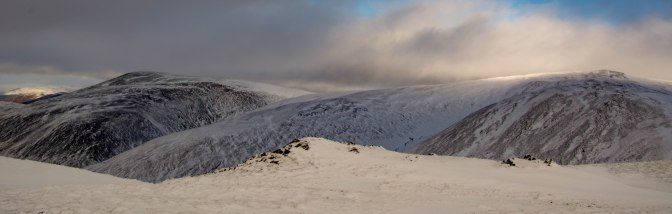 My feelings came from a Munro we did just two days before in the Monadhliath, near Newtonmore, the perfectly easy A’Chailleach which turned out to be an utterly exhausting slog through deep, virgin snow.I haven’t got round to writing it up yet as ‘failure’ is attached to it in my mind – while we made the summit eventually, we had to forego walking to the second Munro as darkness may have caught us out.Bad planning! We’d needed a full day to recover from that escapade.