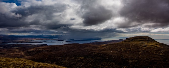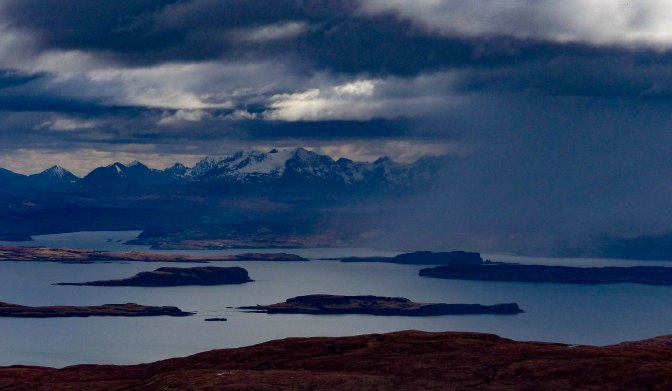 But already, some fine views of north Skye and the Cuillin were opening up, always good for keeping the spirits up.Something we always notice these days is how much harder a walk seems to be compared to previous years. We must have been wee sprightly mountain goats in times past.No more 😦 Still, as Chris always says to me when I moan about my legs being tired ‘we’re doing alright for a couple of old duffers.’ To which I always reply in indignation ‘speak for yourself!”
