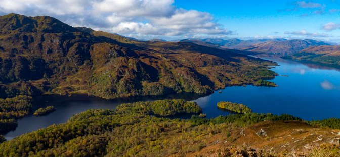 This is the loveliest little mountain, with glorious views over Loch Katrine. A great family walk, it’s only around 45 mins to the top on a well built path.Just over 2 miles return. Yes, a bit of slog as there’s still 340m or 1,120 feet or so to ascend but it’s worth the minor effort. I think the views are actually better from here than from higher Ben Venue (pron. ven -oo) opposite which is much more of an outing.