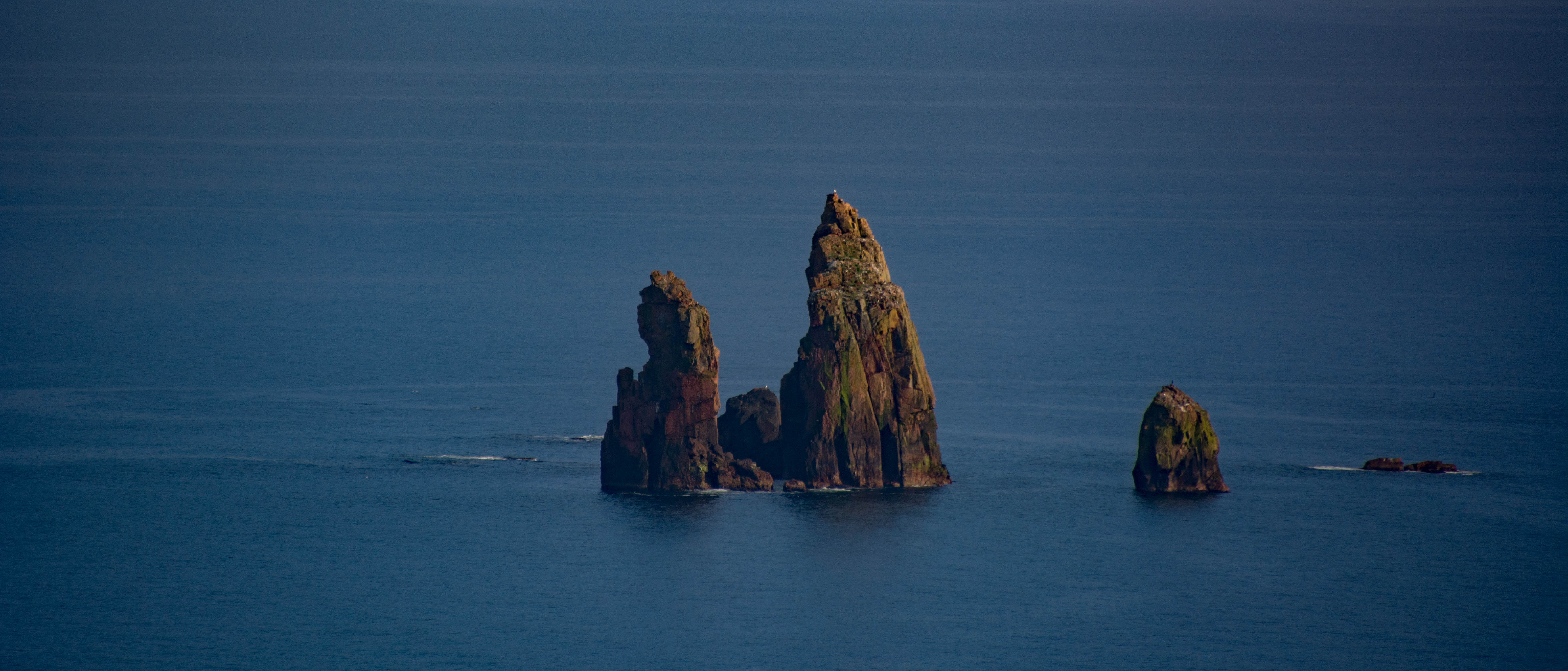 Some fruit and then some honey roasted cashew nuts with a few cups of tea, water boiled on the faithful Trangia Stove and I was very happy I’d made the minor effort to be up here. The area is called Watch Hill, quite ordinary compared to some of the brilliant local names close by.The superb cliffs I could see directly across the bay with their stacks were The Runk and The Neap.Further round and out of my sight lay the Heads of Grocken, like a monster out of Tolkein. The stunning headland and cliffs beyond the next bay had The Drongs sitting offshore below the Pund of Grevasand.