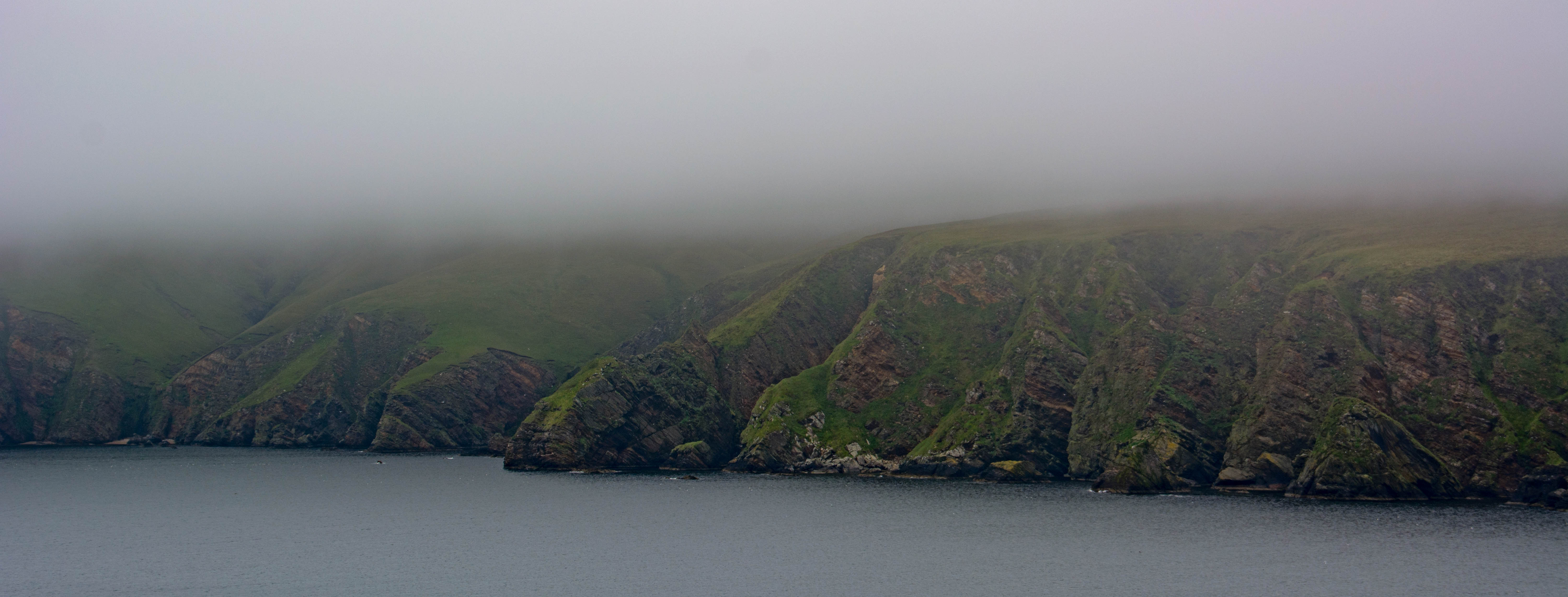 ‘My favourite place on Shetland,’ the guy said, shaking his head in frustration at being unable to see a blinking thing of the drama below.They lived in Scalloway and had hoped, as I had, that the weather might improve.’It’s an amazing place.Just a shame you can’t see it…’ he commiserated when I told them it was my first ever visit.