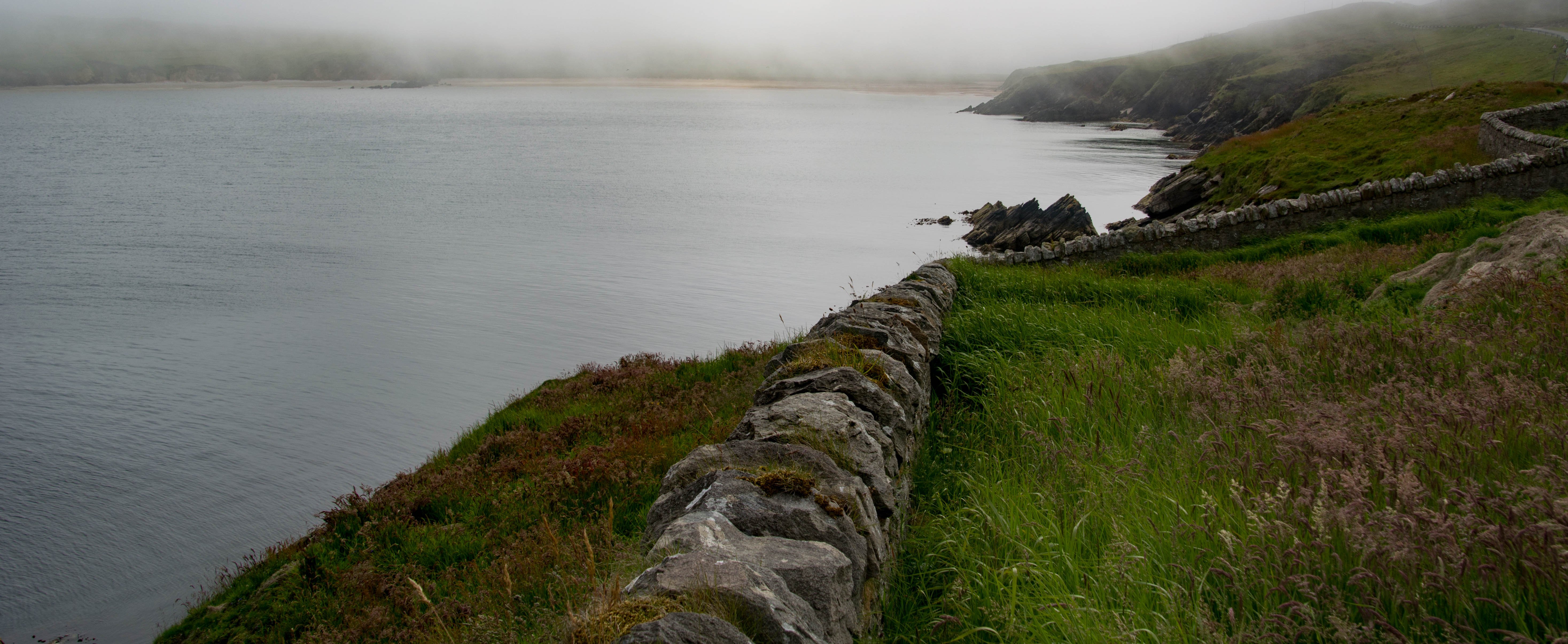 I set off from camp at 8am next morning after a super-early shower (snoring guy still snoring, I could hear him from the kitchen.What’s more, I was told by another fellow camper that there was a ‘partner’ in there with him.God help her or him.) Scoffed a pot-o-porridge sprinkled liberally with sugar (my Mum in Law would be horrified at that sacrilege) and gallons of tea.It was drizzly and grey outside, with the mist hanging low over the island’s low rolling hills and moorland.With any luck, I hoped it would clear though my main concern was whether I’d actually get to where I wanted to be .I hate the ‘turn up and hope for the best’ scenario that can happen with last minute plans involving ferries.Must be the control freak in me; my plan for a day away tends to have a touch of the military campaign about it.I don’t do ‘go with the flow/see what happens’ very well!