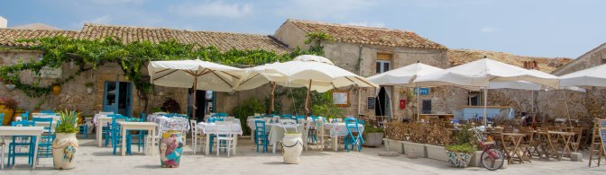 I’d read of the fishing village of Marzamemi, not too far away, so off we took for that, keen to get to the sea again. Easy and quiet parking and in minutes we were past the modern outskirts and looking at the most charming , wide piazza lined with beautifully restored fishermen’s cottages and an old church. It was so delightful, the cottages now converted small restaurants with tables and chairs in bright blues and reds. At the back, each had a dining area right on the rocks. Lunch beside the sea, you couldn’t get any closer!