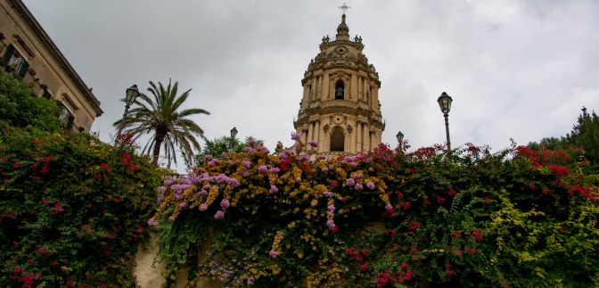 Modica – the city of a hundred churches – awaited so off we set and 45 mins later we were driving on the high road parallel to this surprisingly large city sitting above a deep gorge with a superb view of the higgledy – piggledy, jam packed jumble of tiny Sicilian houses that made up its centre.