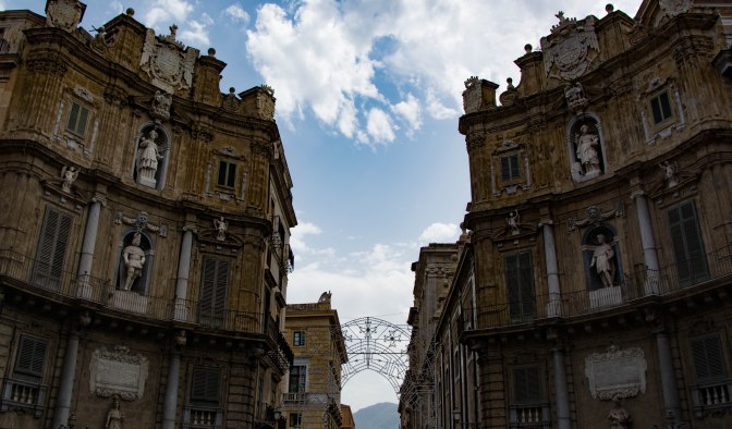 Just beyond it lay Piazza Pretoria which I fell in love with immediately. Those fountains! 16 nude marble statues of nymphs, mermaids and gods lined the circular fountain, a photographer’s dream. Elegant and gorgeous, it was a glorious spot lined with beautiful palazzos. It reminded me a little of Rome, to me, Europe’s most beautiful city.
