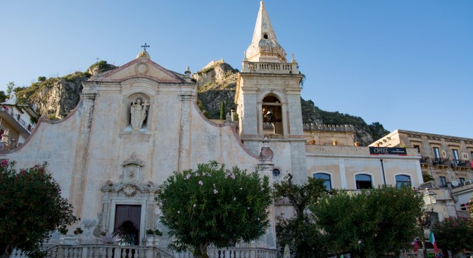 I don’t know what I expected of Taormina itself – over developed, too busy, too touristy from what I’d read –but I just fell in love with it. But then, much as my heart lies in wild places, I do love a bit of chic and glam! And the town had both in spades with an upmarket look about it unlike anywhere else we had seen so far this trip. The main thoroughfare, the Corso Umberto 1, was busy but it was incredibly elegant, with beautiful shops and pastel coloured buildings, all interspersed with beautiful old buildings and facades; the 10th century Palazzo Corvaja, 13th century Cattedrale di San Nicolo, a beauty, and many 16th century palazzos and public gardens.