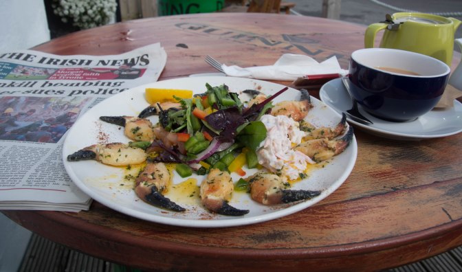 Stopped for lunch after this at a brilliant wee pub ‘The Singing Pub’ in Clontallagh just beyond Tramarossan bay. Sat outside and had fantastic cocktail crab claws in a beautifully dressed salad. Excellent.Very quaint looking place, maybe a bit touristy looking but very attractive.