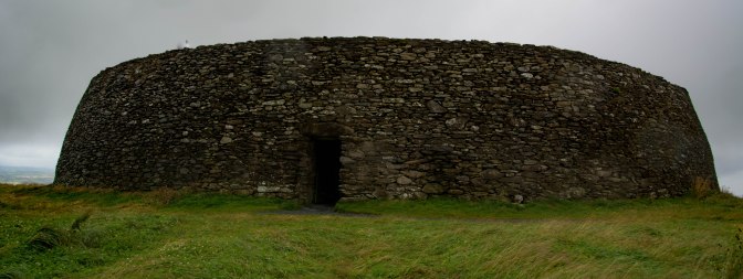 The rain had started again after a brief respite and I’d thought to stop off at one or two of the ruined castles on the coast but by the time I drove back there it was pelting down.So headed on west to find a good tea and cake stop.It took a while until I finally stopped in Bridgend and the excellent Gap Coffee Company; good tea and a fine scone. This was very near my next objective – the Ring Fort of Grianan Aileach(1700 BC). I was now back in County Donegal again.