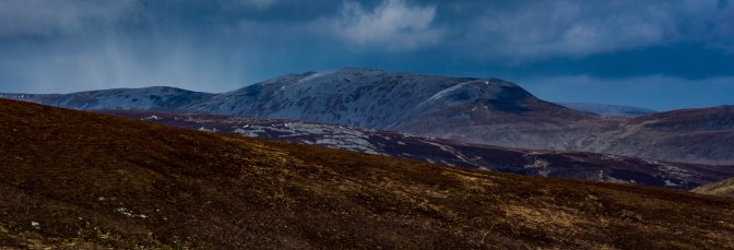 There is a large track all the way up to the summit of this benign, rounded hill, surrounded by grouse moorland and deep corries. It’s the haunt of Ptarmigan and the Golden Eagle, Hares and Golden Plover. Beautiful country and quite empty.