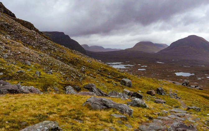 This walk took us easily into the very wild and rugged MacFarquar’s Corrie or Coire Mhic Fhearchair and the heart of the truly ancient hinterland of Wester Ross.