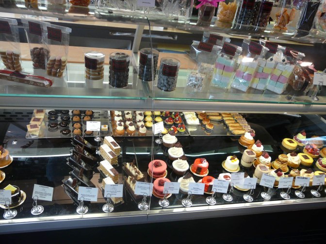 Picked up a favourite – a mango mousse dessert – which was beautifully boxed for me and a few handmade chocolates . Then on to the local Supermarche, which sells gorgeous fresh Duck Foie Gras for a fairly reasonable price. Armed with food for dinner on our balcony, we got the train (bang next door to the supermarket) back to Villefranche given we were now laden with bags of supplies and bottles of wine. Picked up a couple of baguettes from the local bakery and we were all set.