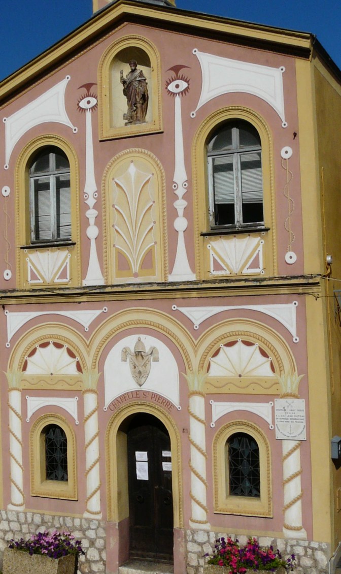 Then a stroll along the front, past the pretty pastel pink church – the Chapelle St Pierre – with its striking interior painted by Jean Cocteau.