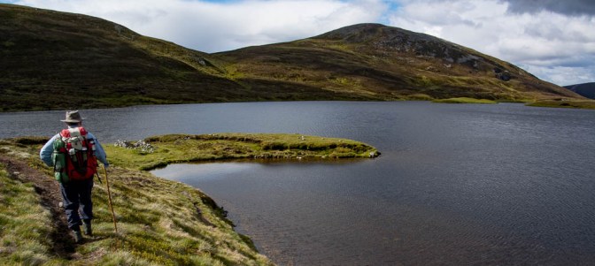 I love a wild, high lochan and even better if we can camp on its lonely shores. We were keen to ‘bag’ a couple of the more remote Munros (mountains over 3,000 feet) but didn’t fancy doing them as a 20 mile day trip, as suggested in Walkhighlands.So we planned our own route, much shorter and made all the easier by doing a walk in on Day 1 and enjoying a wild camp in the sub-Arctic tundra landscape of Cairngorm National Park in the Glenshee area.