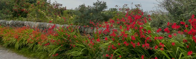 A two minute drive brought us to the little apartment we had at Tigh na Greine, a bungalow outside the village and on the main road.The garden was lovely – in fact Islay all over was covered in bright orange and red Monbretia, dark red Fuchsia and Meadowsweet lining the roads and stone walls and gardens. Absolutely beautiful.