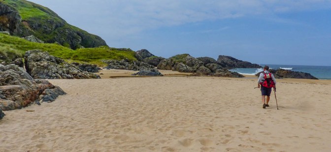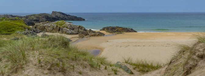 Then down through a break in the fence and along nice short turf for 10 mins or so until the beach came into view.It’s a sight to thrill the heart too – a corker of a beach, deserted usually because there’s minor effort to get there and of course, all the better for that!