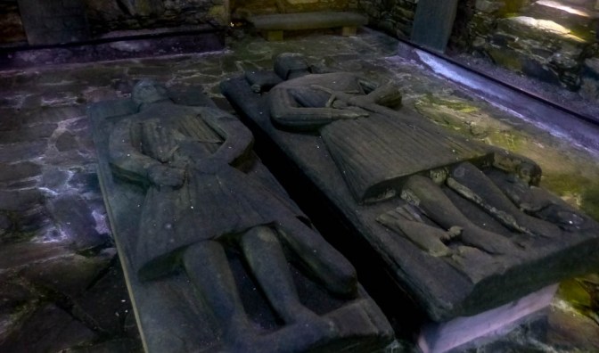 A good track took us to Oronsay Farm and the ancient Priory itself, where we explored the superb collection of 14th century buildings and two Celtic carved crosses, one of which was over 3m high. One small building housed warrior grave slabs and slabs with the intricate carvings of past Priors. Absolutely fascinating.
