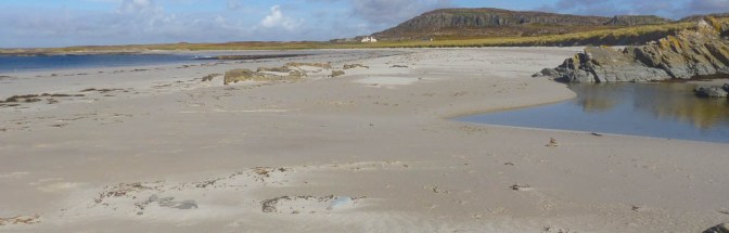 It was lovely easy walking on flat grass, up by a nice little Bothy above the beach then across to another longer strand of shell sand where we could hear Grey Atlantic seals singing, something very reminiscent of walking on Islay’s beaches.