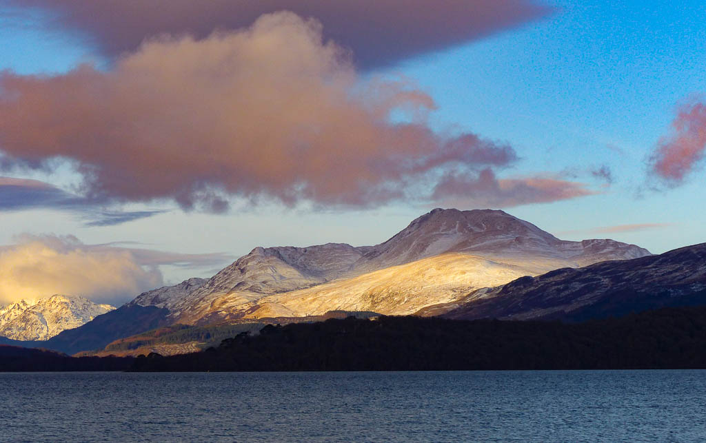 A beautiful mountain, seen at its best from around Luss or Ross Priory. It looks like a shark’s fin from Inverbeg and beyond. The hill’s name translates as Beacon Mountain and it makes for a great family hike as the path is so good all the way to the top – a stone staircase. The top does narrow a bit with big drop offs on one side and very steep ground on the other. No difficulty though, for most and plenty of room at the top to sit and admire the mountain panorama – from Arran to Ben Nevis – as well as Lowland vistas which include the Wallace Monument at Stirling.
