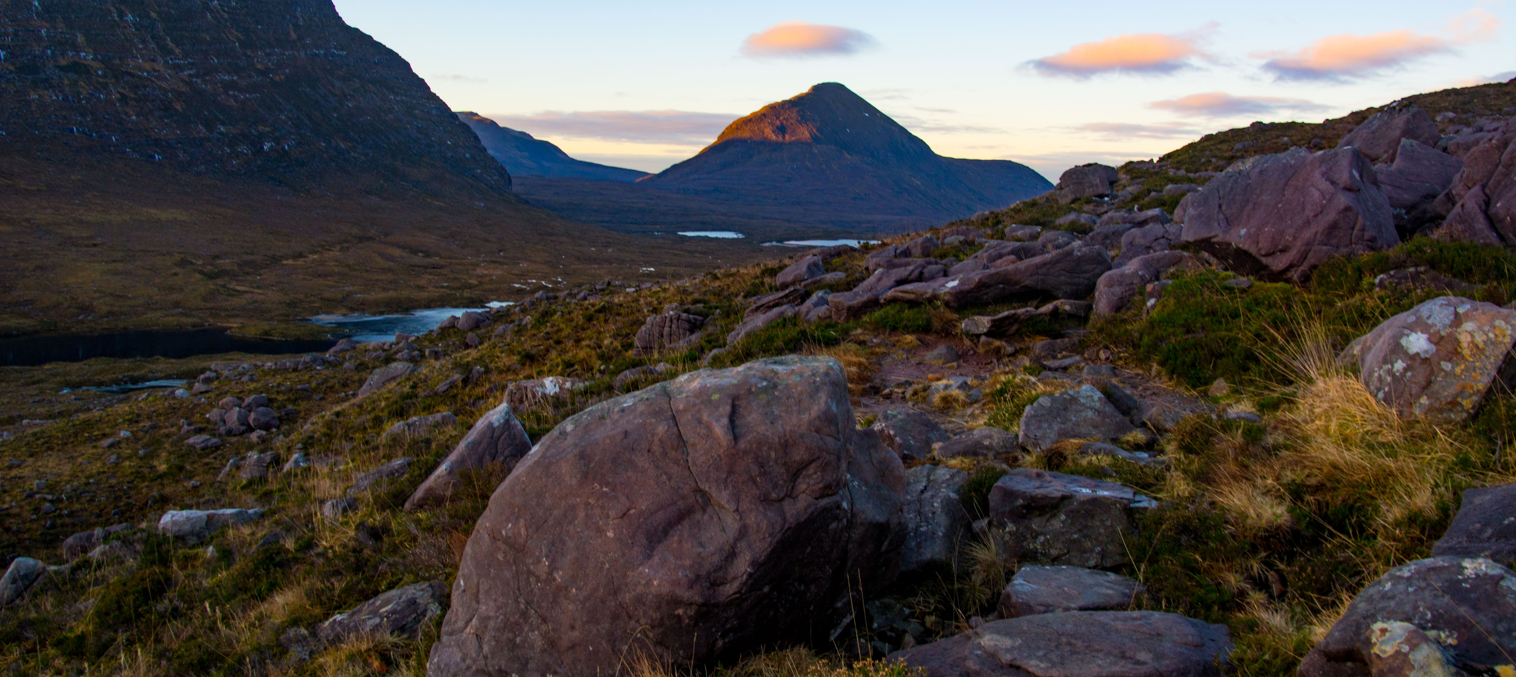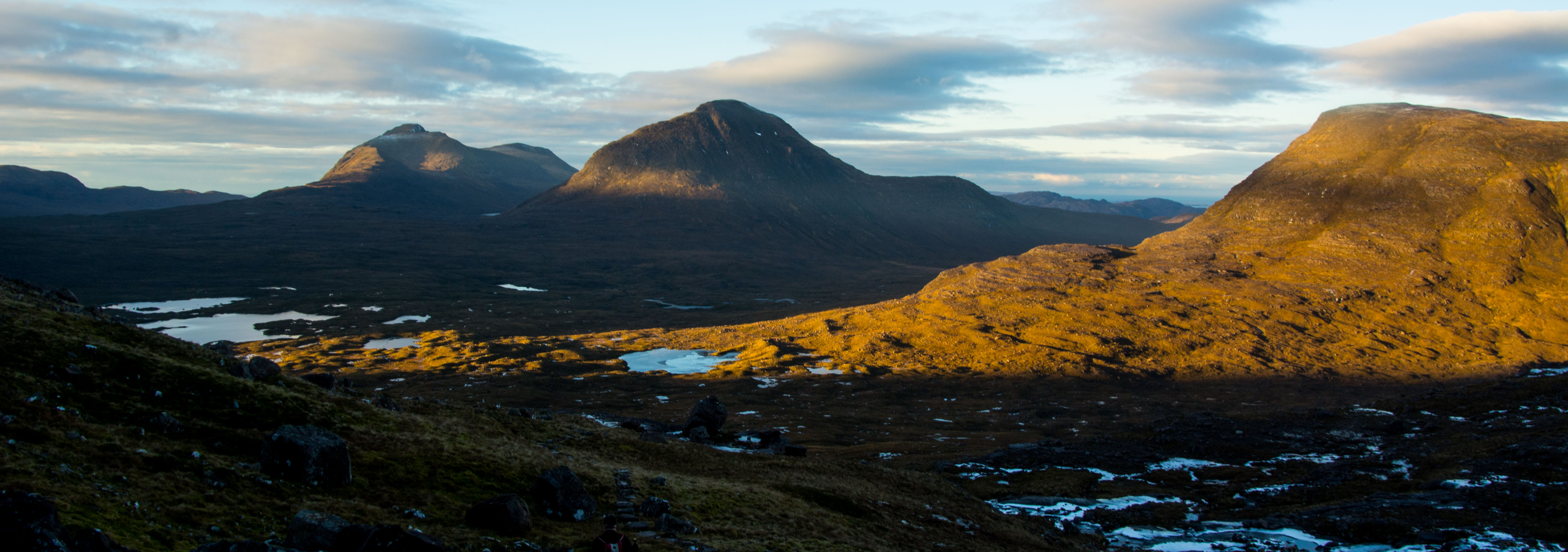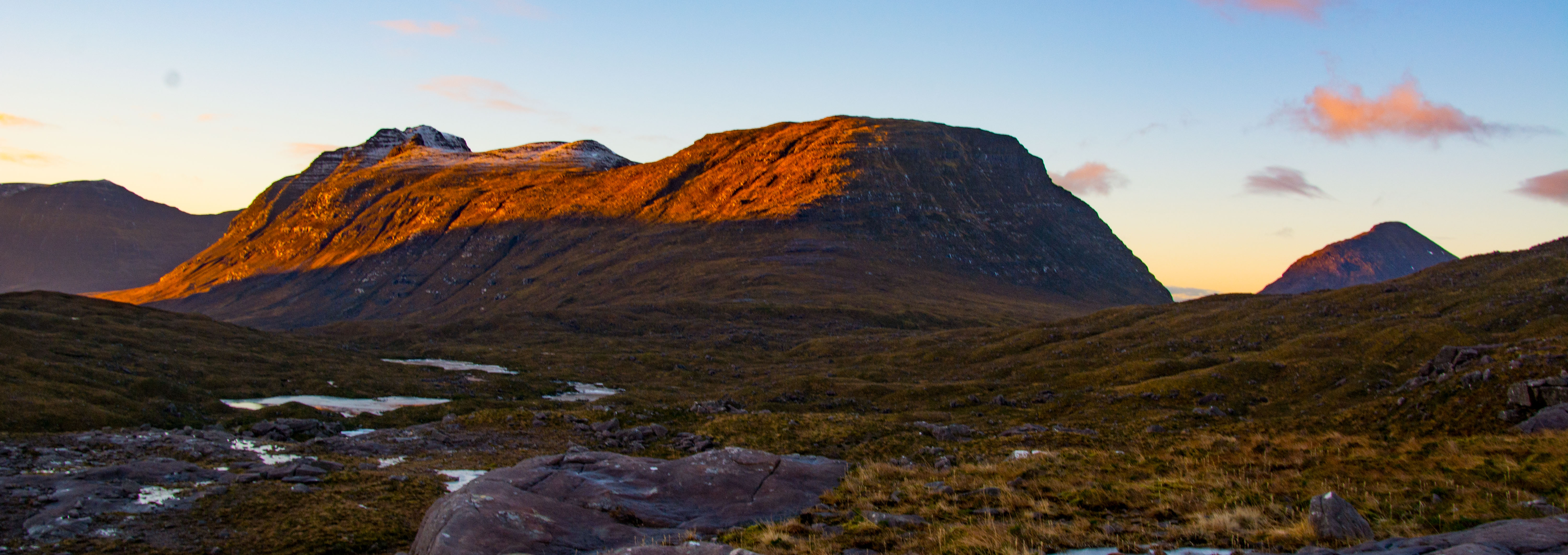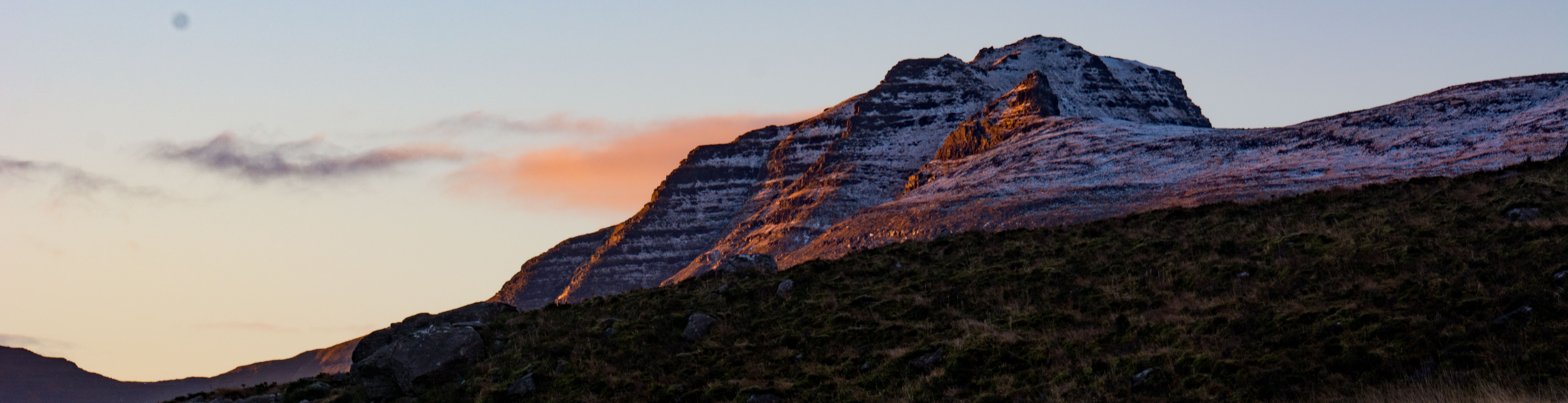 The quartzite slopes of Beinn Eighe were catching some sun but still looked austere and thigh-burningly steep as we began the initial climb up the path.