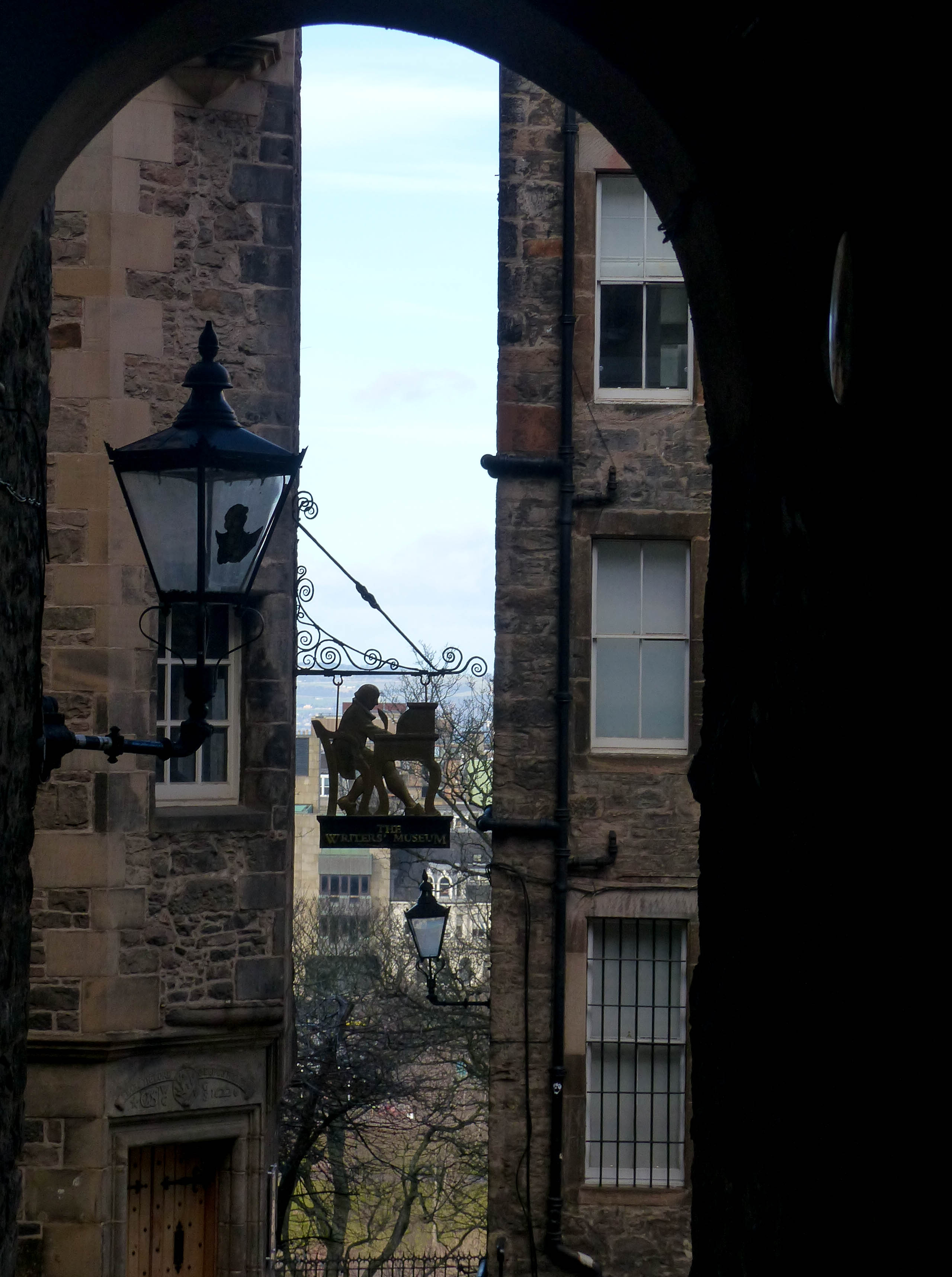 It’s a lovely building to browse in too. When I was last in, the background music was Burns’ ‘Ae Fond Kiss’, a very beautiful, sad and famous song which had me shedding a tear or two. Very atmospheric. The buildings in Lady Stair’s Close are gorgeous and great for atmospheric photos. On the paving stones are the names of some of Scotland’s greatest writers.