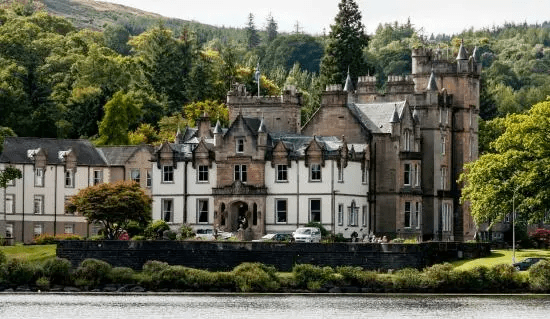 Cameron House Hotel: a 5 star luxurious pile right on the loch and adjacent to Duck Bay. Fine dining in Martin Wishart’s restaurant or upscale lunches or tea/coffee in one of several dining areas. Extensive grounds.