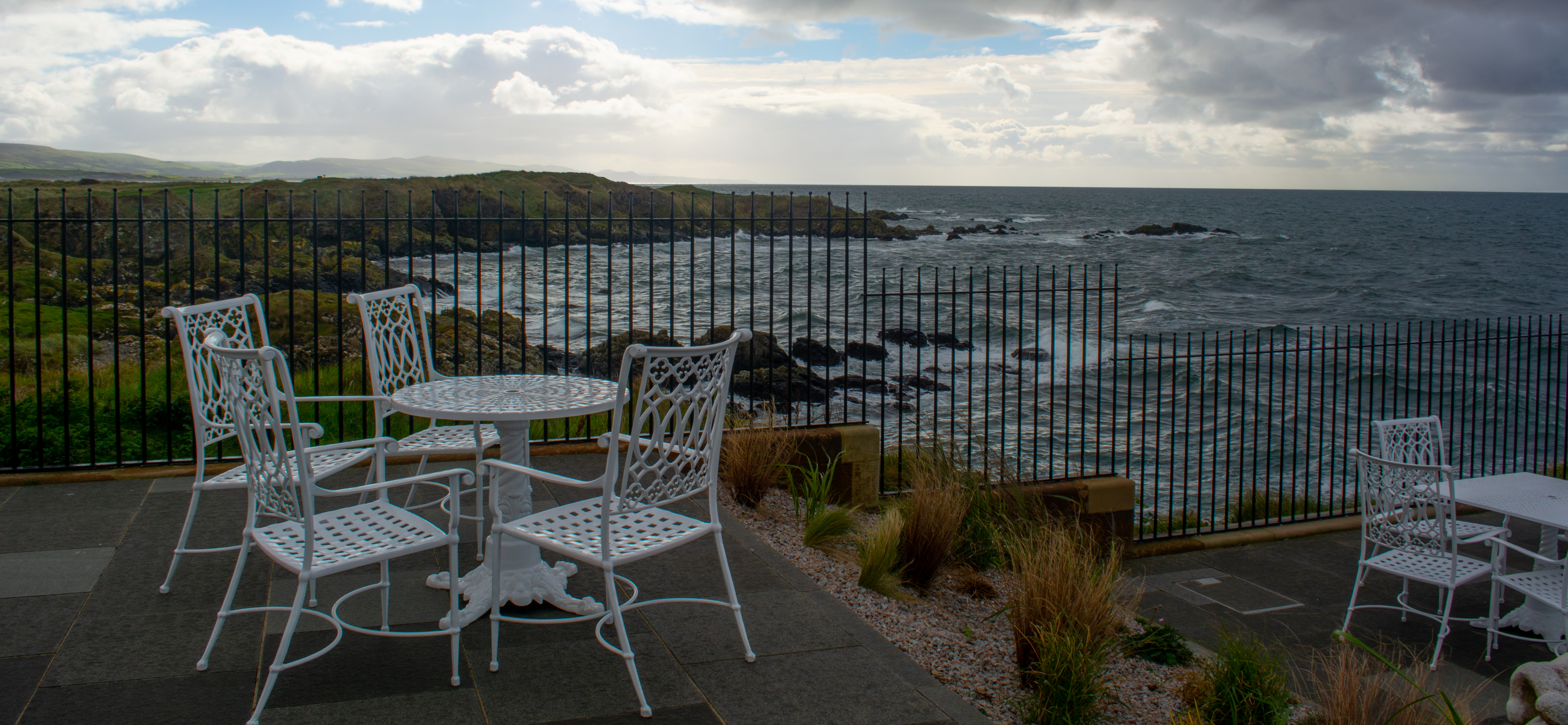 Then a window seat in the Grand Tea Lounge where an enormous oriel window – very Art Deco – gives gorgeous views over the course and the sea.I recently enjoyed a Rhubarb Fool dessert and a cuppa which was very reasonable given the quality and location.About £5 for the tea served in fine china and a silver teapot; the delicious dessert was around £9.Well worth it to sit at a window table and admire this fabulous location.