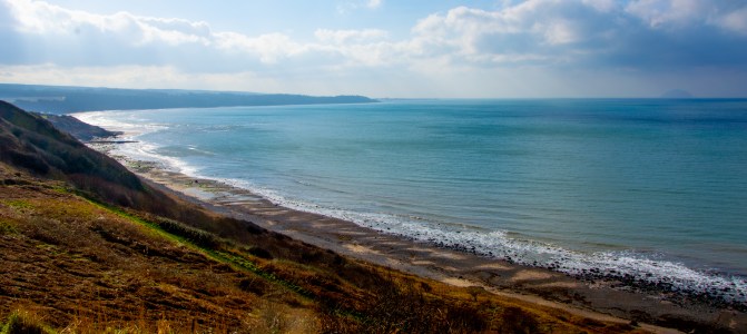 There is nothing at Turnberry beach but the cry of the seagulls, perhaps a fluttering flock of Ringed Plovers with their melodic cry; the high pitched piping of Oyster Catchers and a few brilliant white Gannets diving off shore.In winter, large rafts of Eider ducks bob on the choppy sea.On a clear day, Northern Ireland is just visible on the southern horizon.There is a little hidden beach near the lighthouse, the best place for a picnic as it is more sheltered than the main sands.Then up onto the golf course where a Right of Way took us above the rocky shore.