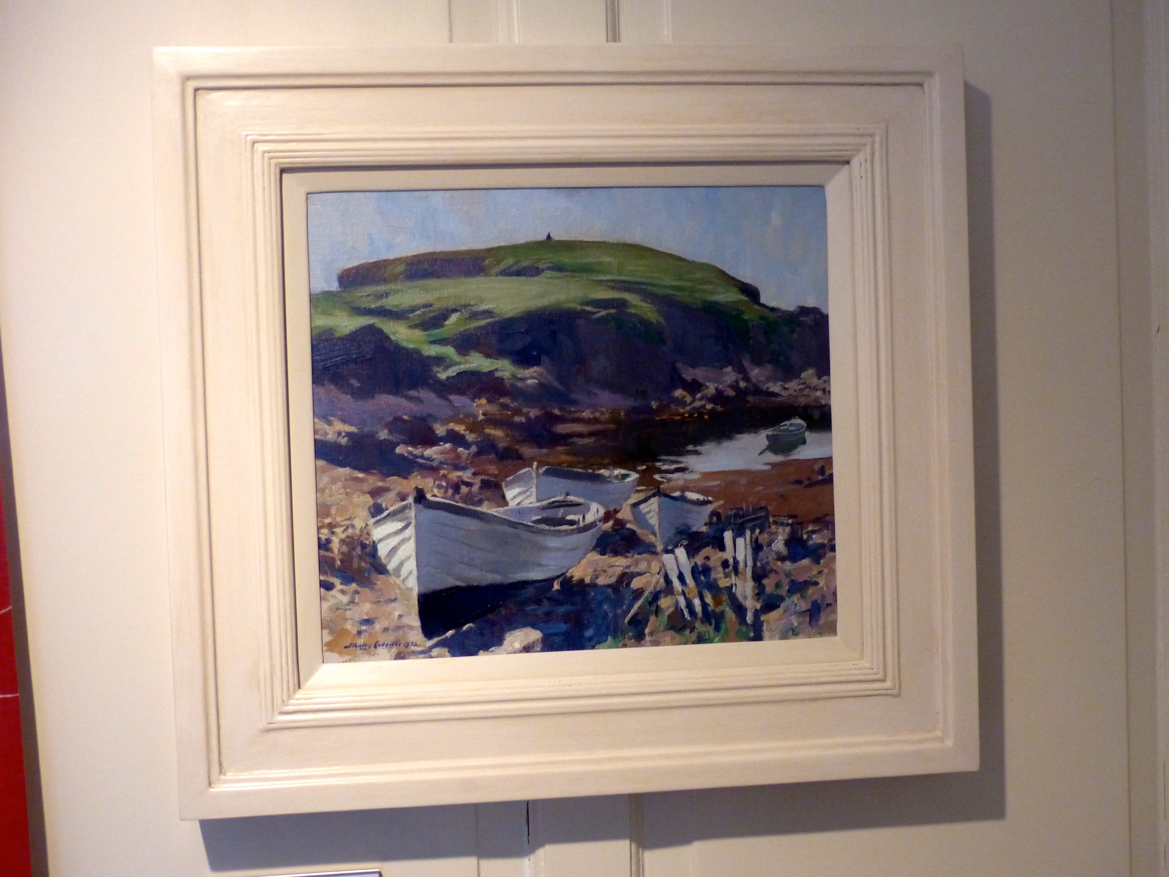 Stromness was a pleasure to stroll through, even on a wet, wild day. The narrow, cobbled streets and the houses all huddled in on each there, were really atmospheric – a bit like the lovely houses of the fishing villages in Fife but not painted white, much more muted in colour and without the red roofs.The swish, modern Pier Art Gallery was a beautiful space and a joy to wander through with its big glass windows and airy feel. I can’t honestly say much of the abstract art was to my taste but I enjoyed some of Barbara Hepworth and Stanley Cursiter’s work.