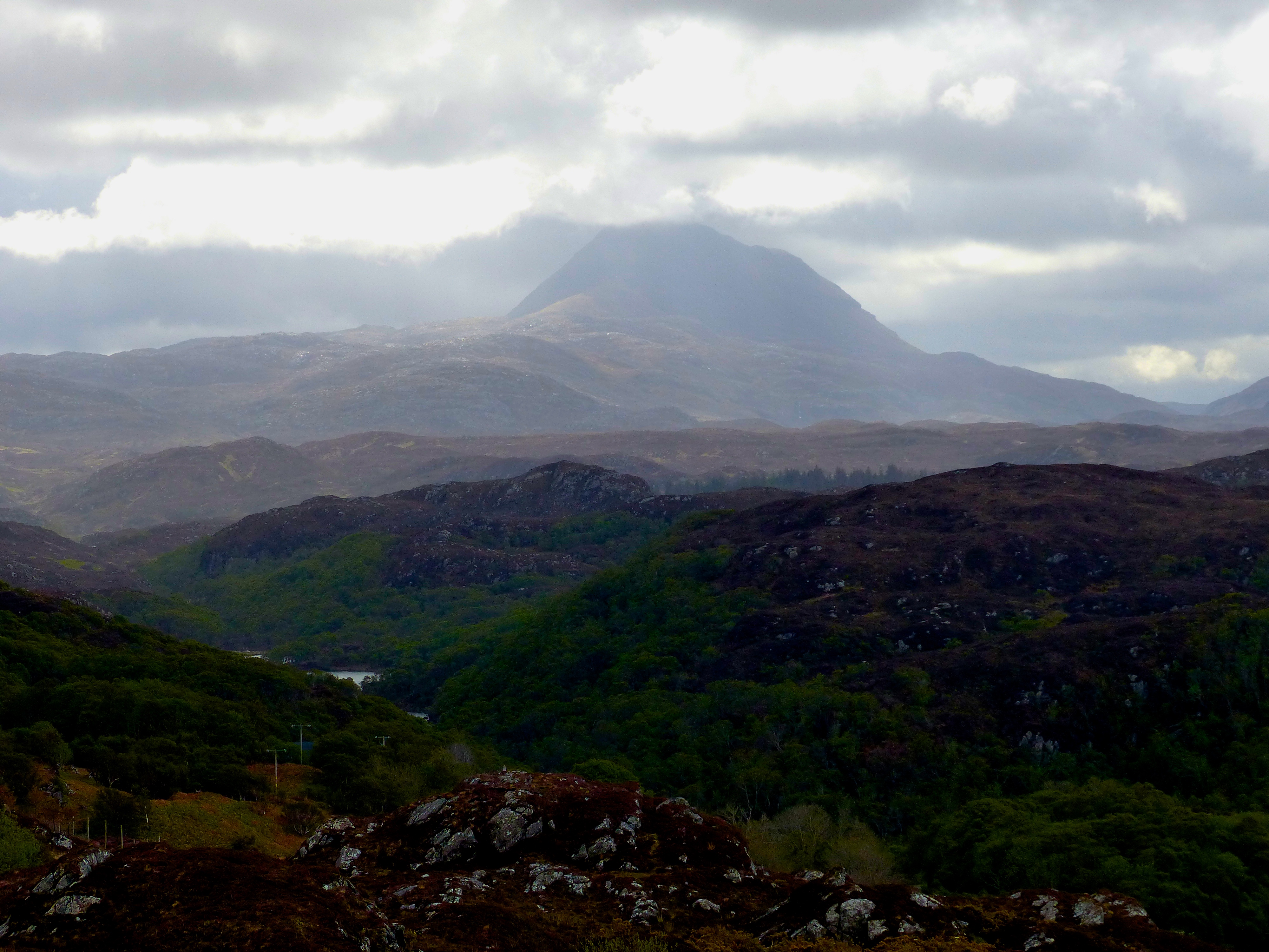 It wasn’t looking its best so we headed onto the high ground to get a view of the Coigach mountains, tomorrow’s destination. Ben More Coigach was visible – a cracking mountain, a beautiful walk – and steep little Stac Polly and Cul Mor.
