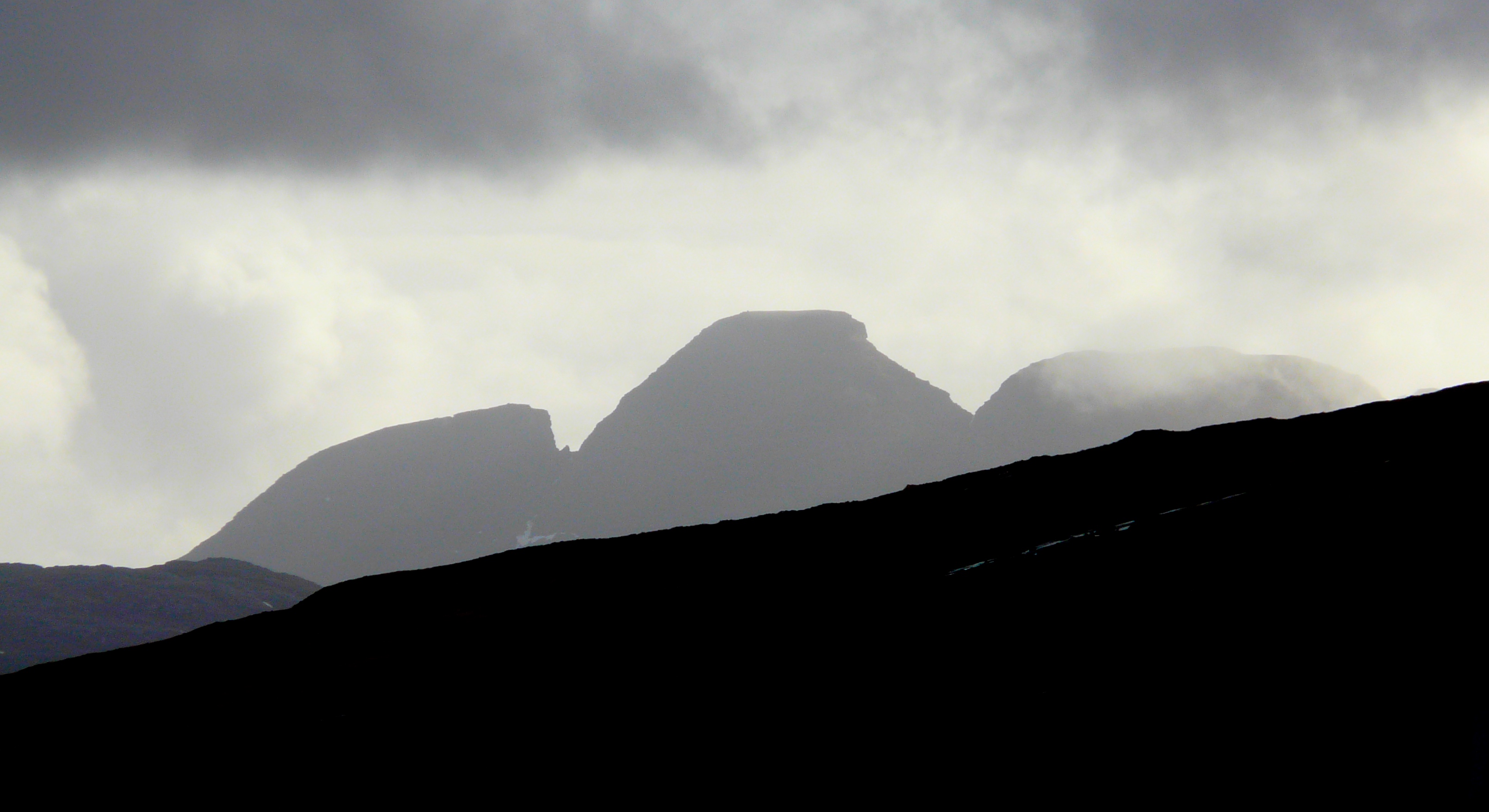 The plan was to camp on the slopes of Quinag, one of our favourite mountains above Loch Assynt – IF the weather was half decent.The forecast however was suggesting low cloud, rain and winds so our chances weren’t looking so good.